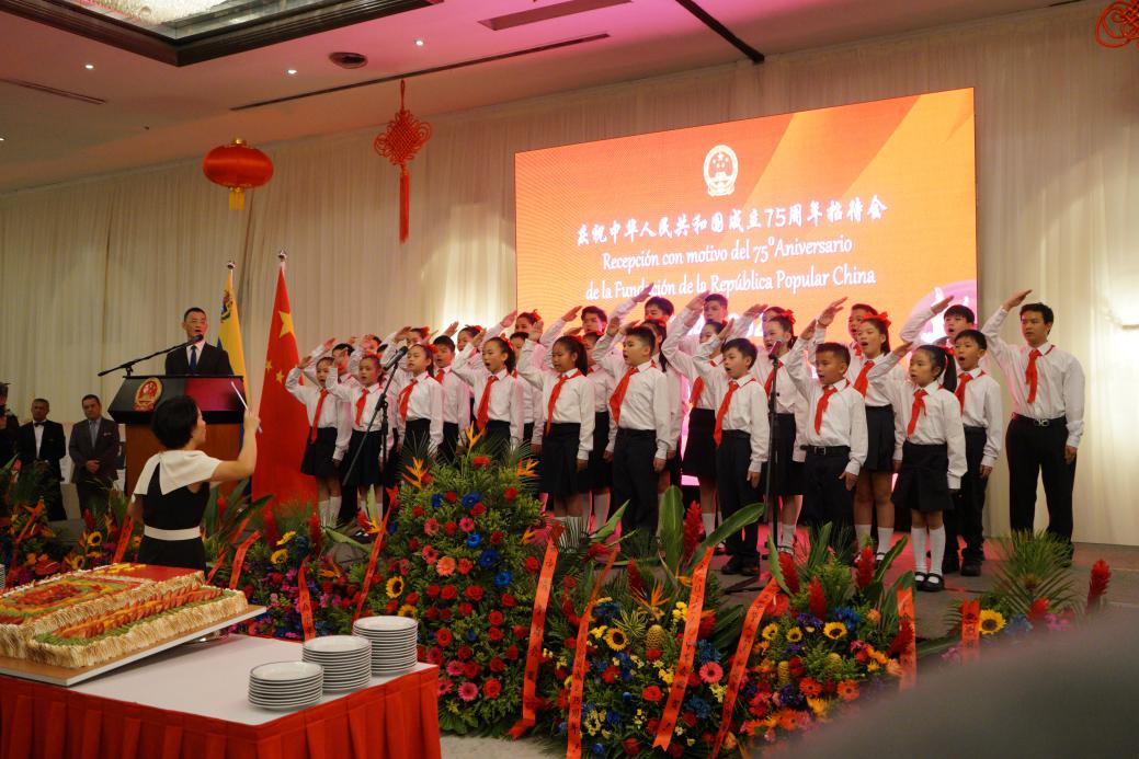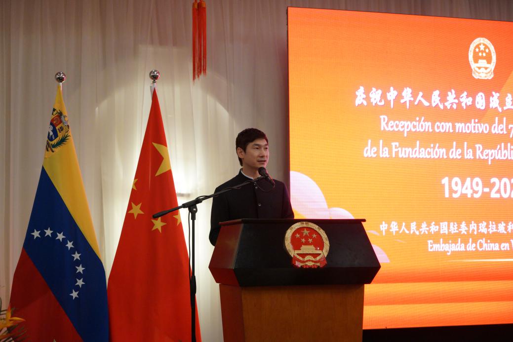 招待会期间加拉加斯中文学校学生演唱两国国歌,放映了《中国高度》等专题宣传片。现场气氛热烈友好,委主流媒体和驻委央媒全程进行报道。
